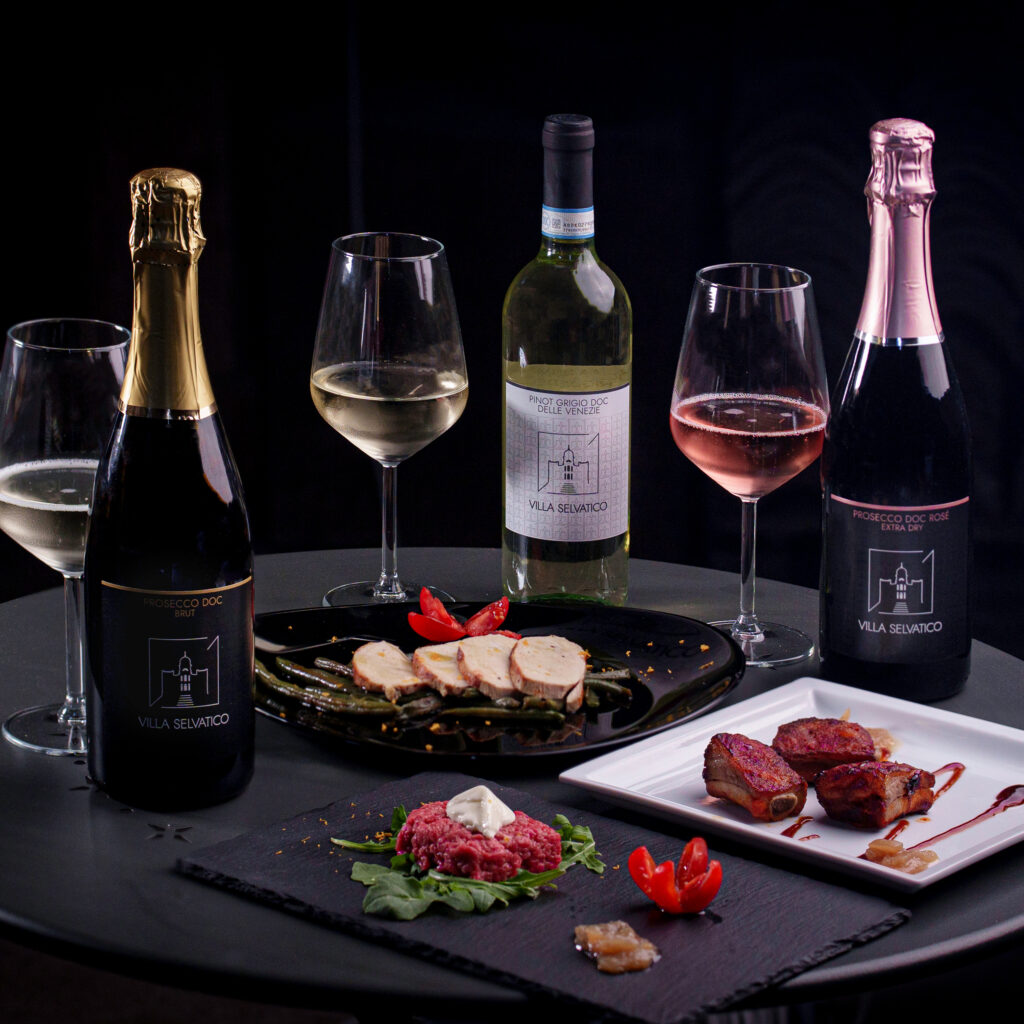 I vini di Villa Selvatico raccontano il carattere unico del territorio veneto in ogni calice. Si parte dal Prosecco DOC, con bollicine fini e profumi floreali, per poi passare al Pinot Bianco, fresco e fruttato, perfetto da abbinare a piatti di pesce o aperitivi. L’unico vino rosso è il Cabernet, dal colore rubino intenso, tannini equilibrati, ideale con carni rosse e formaggi stagionati.
