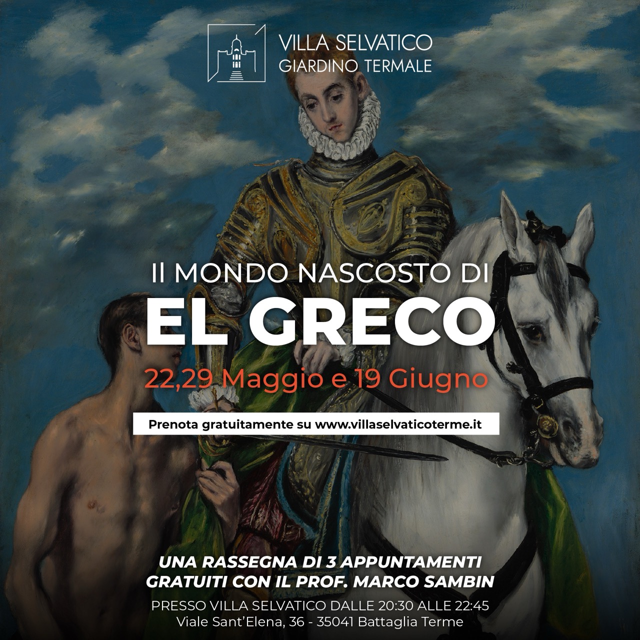 Villa Selvatico Viale Sant'Elena, 36, Battaglia Terme, ItaliaEl Greco uno dei più significativi geni di tutta la storia del pensiero pittorico occidentale, e non. Vi presentiamo tre appuntamenti di approfondimento da non perdere, ogni appuntamento si terrà presso Villa Selvatico in Viale Sant'Elena, 36 a Battaglia Terme, nelle seguenti date: 22 e 29 Maggio, 19 Giugno dalle 20:30 alle 22:45. Cosa succederà? […]