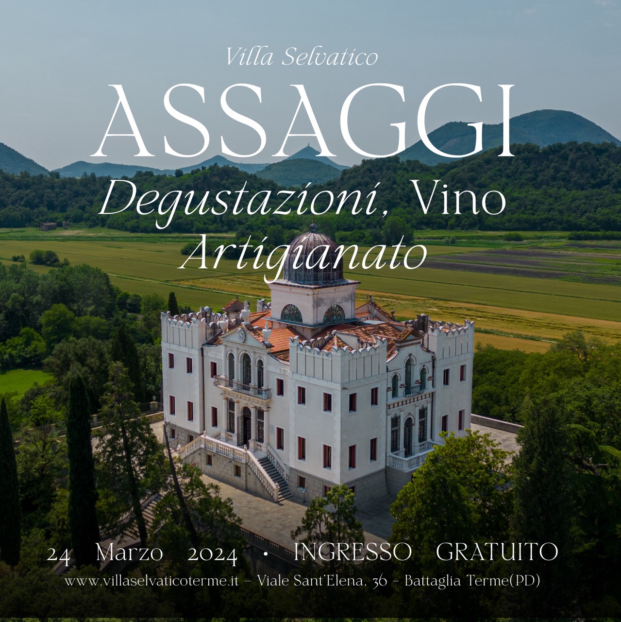 Villa Selvatico Viale Sant'Elena, 36, Battaglia Terme, ItaliaIn occasioni dell'EVENTO "Assaggi: Salumi e Formaggi, Vino e Artigianato" ( SCOPRI L'EVENTO ) Sarà possibile effettuare visite guidate e audioguidate. Prenota la visita audioguidata (CLICCA QUI) Prenota la visita guidata(durata circa 1h) (CLICCA QUI)