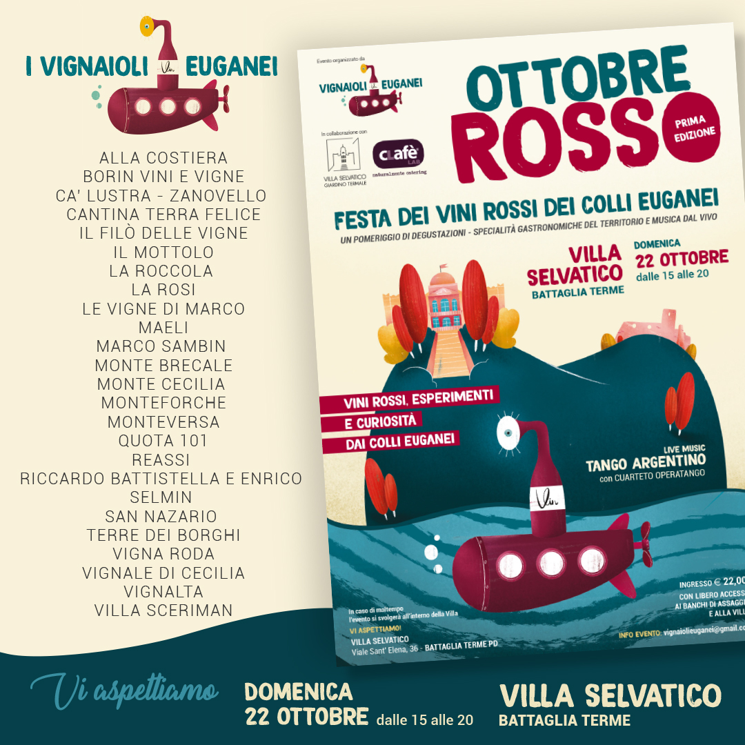 Villa Selvatico Viale Sant'Elena, 36, Battaglia Terme, ItaliaIl 22 Ottobre dalle ore 15:00, Villa Selvatico si trasforma in un palcoscenico di colori e sapori unici. Le foglie si tingono di rosso, i calici si riempiono di eccellenze, e tu sei invitato a unirti a noi per un evento straordinario.
